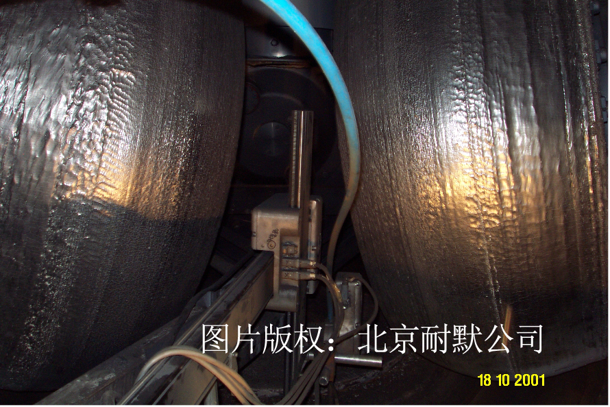 圖(1)立磨磨輥堆焊采用的藥芯焊耐磨焊絲在線(xiàn)堆焊